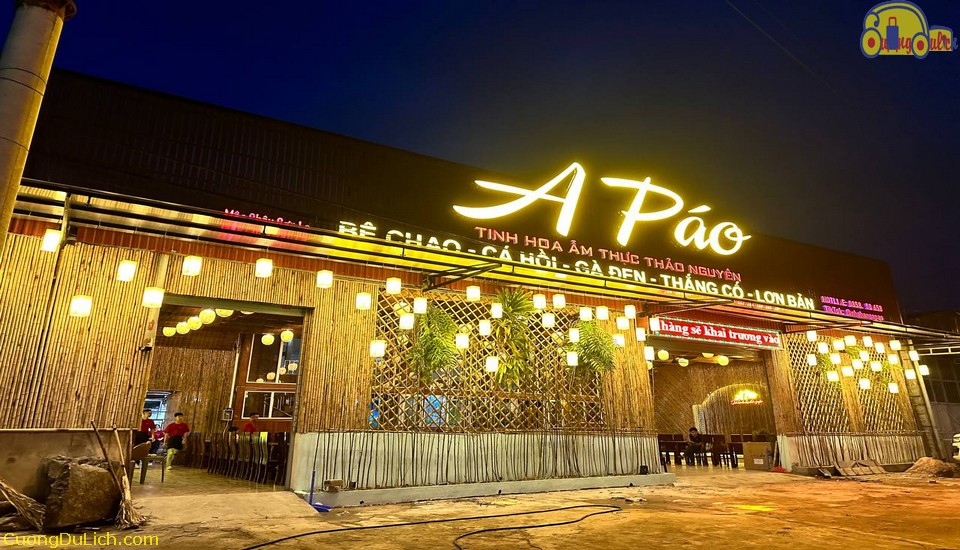 Nằm tại Số nhà 225, đường Hoàng Quốc Việt, tổ dân phố Bó Bun, phường Vân Sơn, tỉnh Sơn La, nhà hàng A Páo là một trong những địa chỉ ăn uống được du khách yêu thích nhất khi đến với cao nguyên Mộc Châu. Không chỉ nổi bật với không gian rộng rãi, mang đậm phong cách vùng cao mộc mạc mà ấm cúng, nơi đây còn chinh phục thực khách bằng hương vị đặc trưng của ẩm thực Tây Bắc. Thực đơn của A Páo vô cùng đa dạng, nổi bật nhất phải kể đến các món bê chao giòn rụm, cá suối nướng than hoa, thịt trâu gác bếp, cơm lam chấm muối vừng hay lẩu bê nhúng dấm thơm nức mũi. Tất cả đều được chế biến từ nguyên liệu tươi ngon, đảm bảo chất lượng và mang hương vị đậm đà khó quên. Nhân viên phục vụ nhiệt tình, chu đáo cùng không khí ấm cúng khiến bữa ăn thêm phần trọn vẹn. Mức giá tại đây dao động từ 99.000 – 300.000 VNĐ/người, phù hợp cho cả nhóm bạn, gia đình hoặc đoàn khách du lịch. Nếu bạn muốn tìm một nơi vừa ngon miệng, vừa đậm chất Tây Bắc để thưởng thức trọn vẹn hương vị Mộc Châu, thì A Páo chính là điểm dừng lý tưởng.